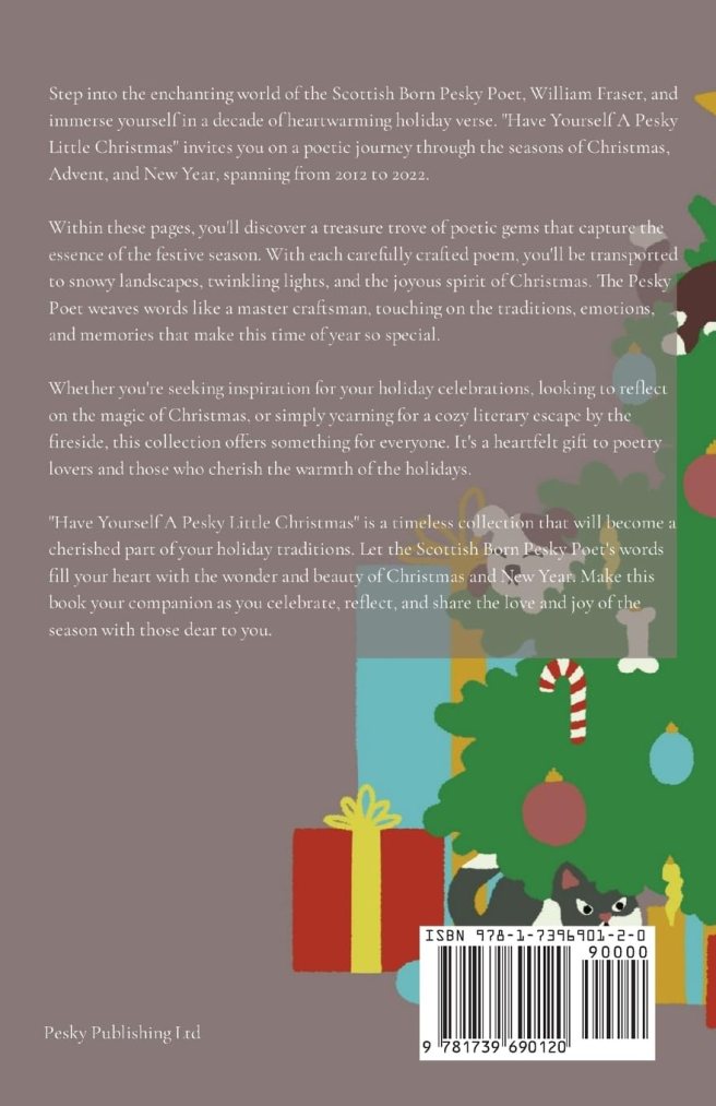 Delve into a decade of heartwarming holiday verse with the Scottish Born Pesky Poet’s ‘Have Yourself A Pesky Little Christmas.’ Immerse yourself in the festive spirit as you journey through Christmas, Advent, and New Year from 2012 to 2022. Each poem is a crafted gem, capturing the magic and traditions of the season. Perfect for holiday reflection and cosy escapes by the fireside, this collection is a heartfelt gift to poetry lovers and those who adore the warmth of the holidays. Let these words kindle the wonder and joy of the season.