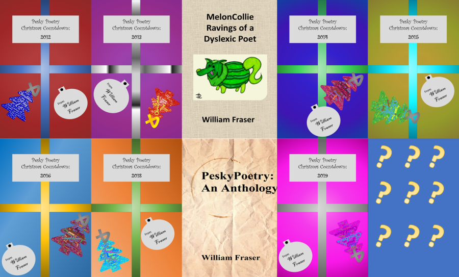 Remember you can support Pesky Poetry by purchasing books. Here are the Christmas Countdowns from 2012 to 2019. Keep an eye out over the next few days for 2020 being added to the series.